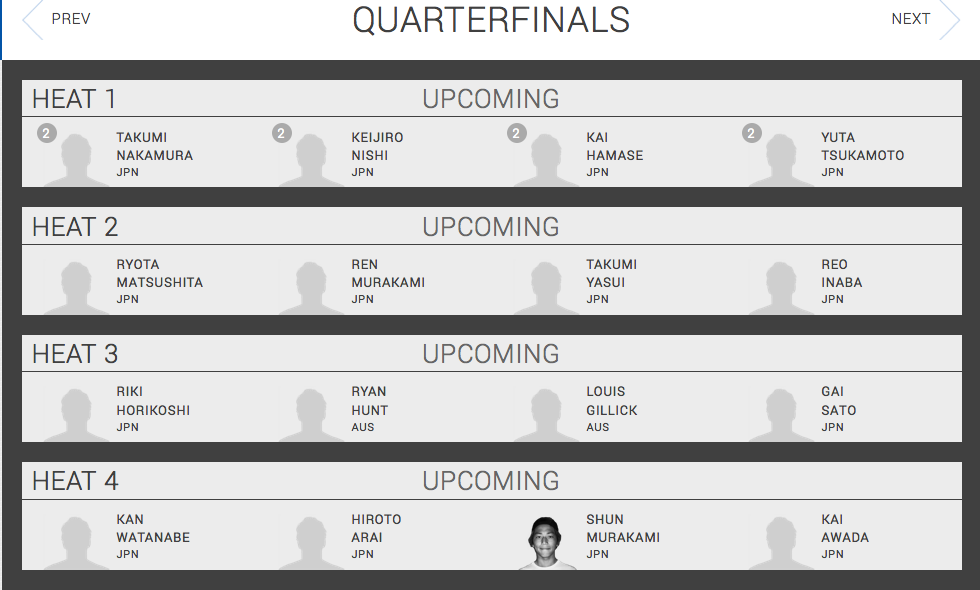 まず、カデットアンダー16に脇田タイチ選手と村上蓮選手が勝ち上がり、もう直ぐヒートが始まります。