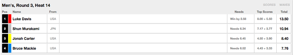 ヒート7、五十嵐カノアが1位、安井タクミが2位で通過。