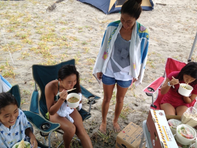 昼食ギリギリまでサーフし、純子ちゃんとアズサが作ってくれたご飯をほおばる(^^)