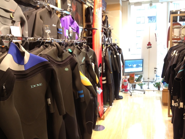 左から、New VN-Type、New CLAM-type、TECHNICAL-type、SEAL-type、真冬のサーフィンを快適にお過ごし下さい。