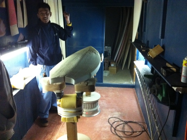 独学でシェイプからラミネートまで全てやってしまいます!本人は遊びの延長がここまでなったと!