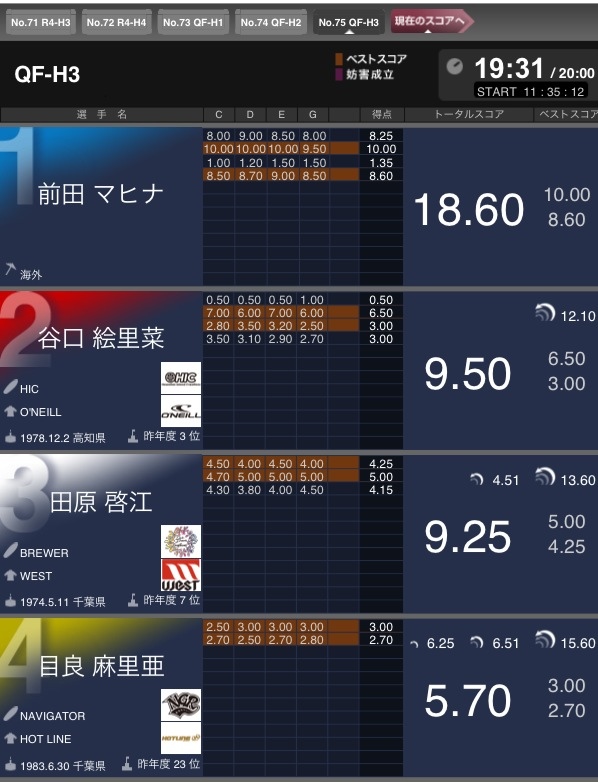 マヒナ、開始早々〜2本の波で決めちゃいましたね。