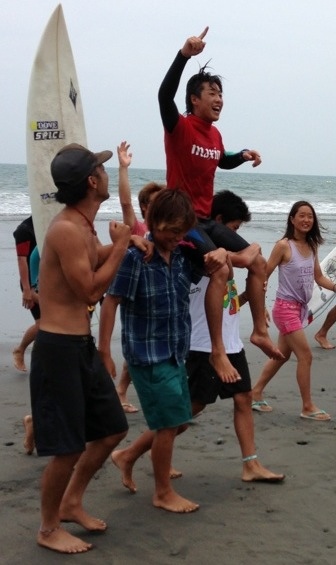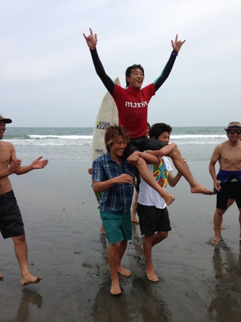 僕らは優勝のRyotaを担ぐ為にビーチへと向おうと…と、その時…Ryotaの良き仲間でもあるライバルの直海がハイスコアが出るライディングを…