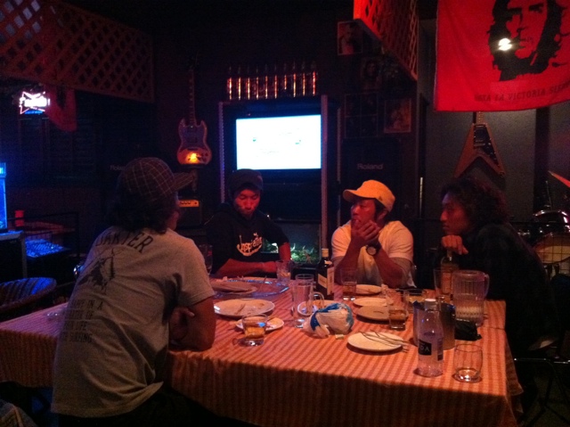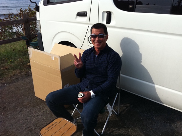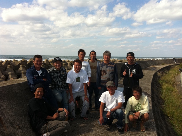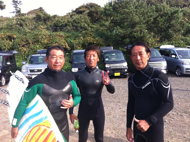 写左から)プランジングサーフのオーナー矢作さん、DOVE 中島、オーシャンゾーンのオーナー佐藤さん!