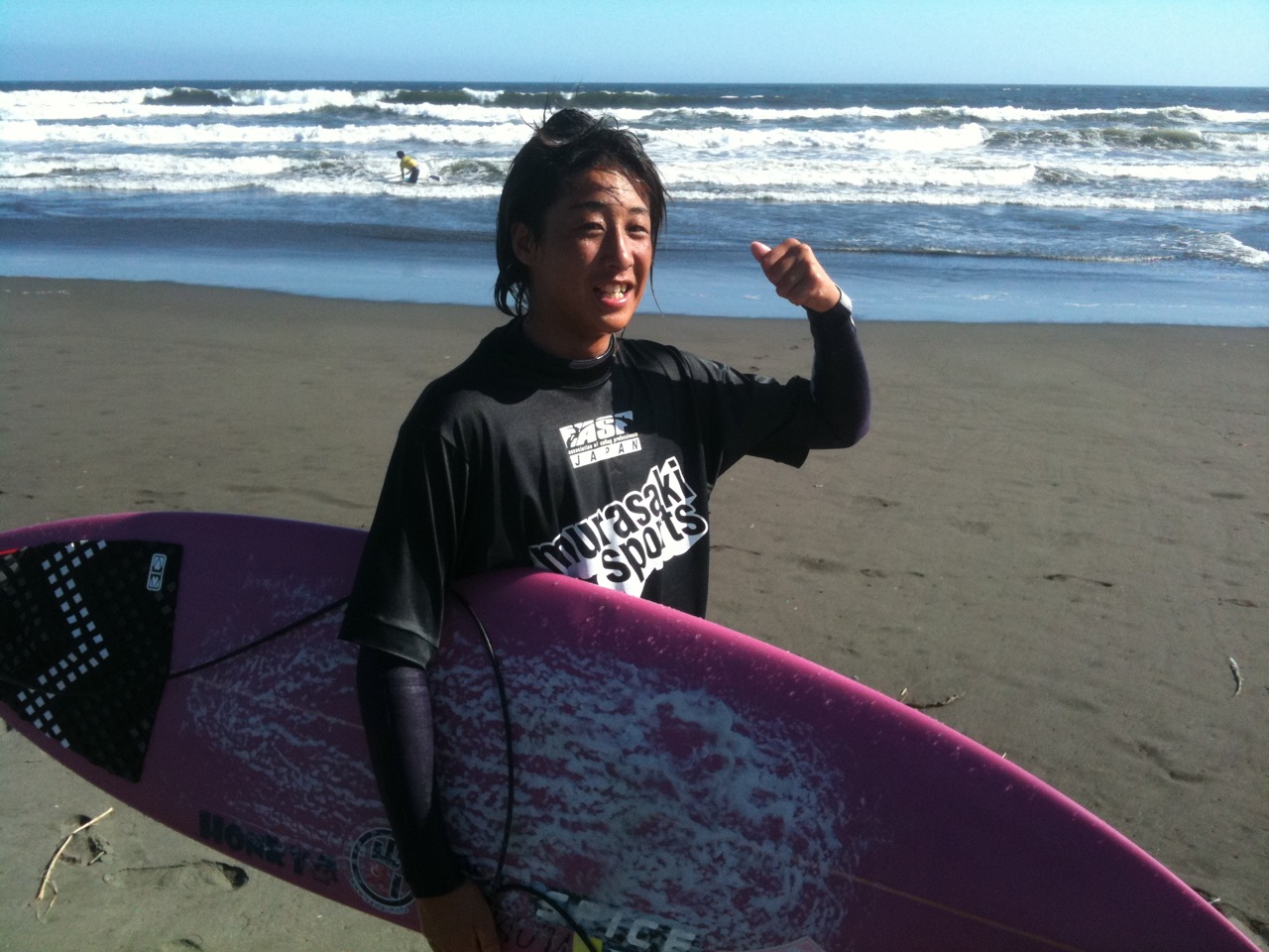最終ヒートで終始リードをしていて、終了のホーン直前に乗った波でエアーを決めダメ押しの7点をマークし余裕のトップ通過!