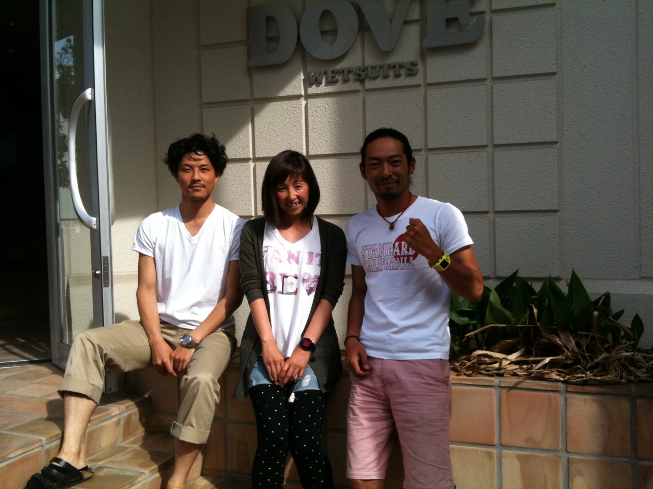 2Fの事務所でおしゃべりをし、1Fの工場内でウェットスーツ作製の流れを説明見学して、色々なフィードバックを頂きました。