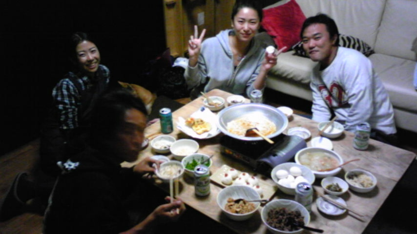 夜、沖本オーナー宅で『うどんすき祭り』NINE SURFライダーのTAKEくん・マリさんと!!