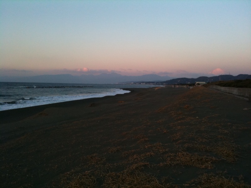 まだ、沿岸の風はオフで沖合ではオンが吹いてるのでバラけたウネリが入って来