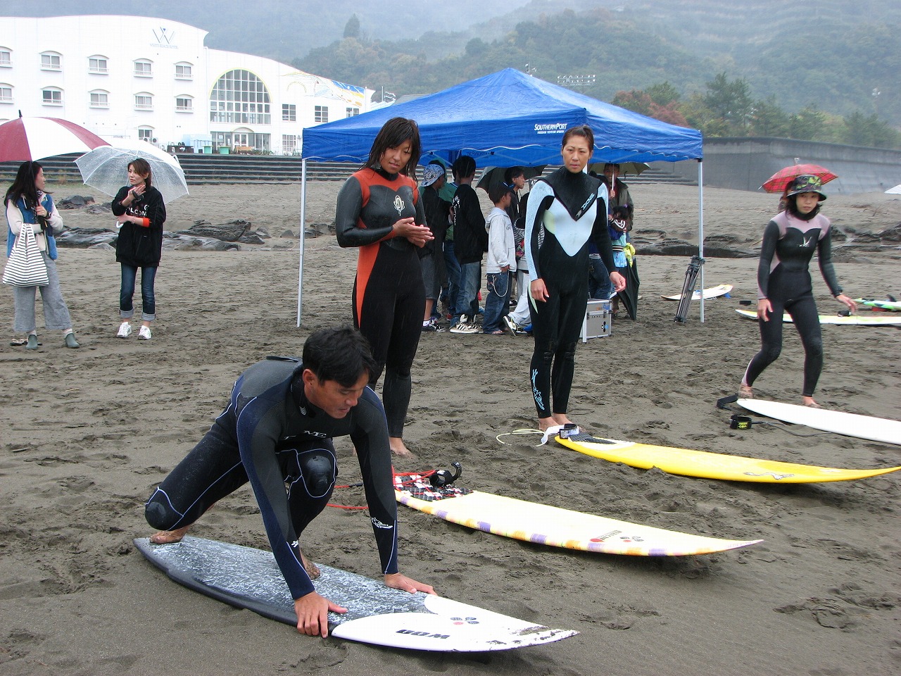 大会前日は、プロサーファーによるスクールが開催されました