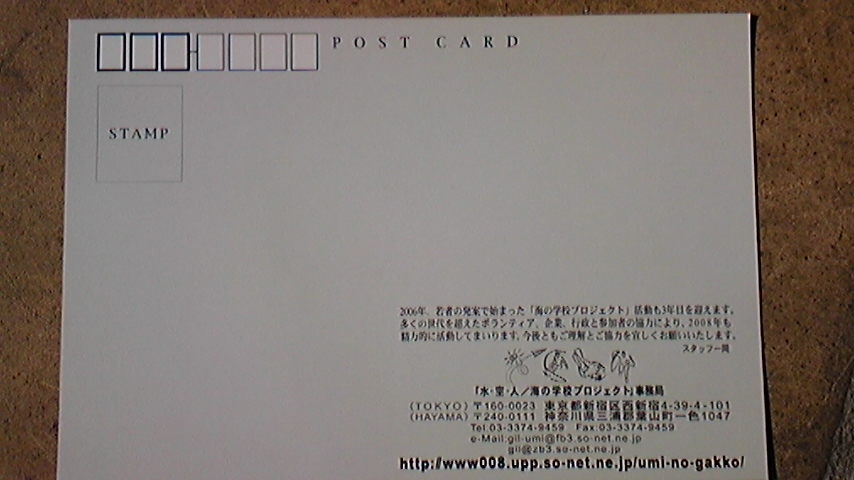 湘南『depth』の桜井正夫オーナーから、『海の学校』のPOST CARDを頂きました。