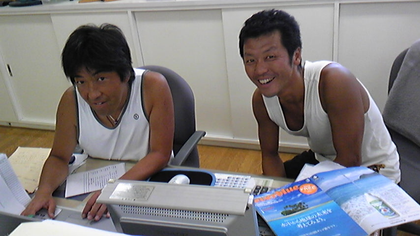 (左)DOVE中島氏、先日UPした唐津『栄治さん』のG-LANDの写真を2人で選んでます(右)MAKKA氏