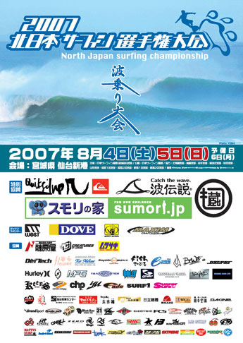 2007年8月4日(土)5日(日) 予備日6日(月)に宮城県仙台新港ポイントにおいてアマチュアのコンテストとしては、大規模な北日本サーフィン選手権大会が開催されます。