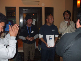 先日1月末に辻堂に有るFREE RIDEの7周年パーティーが開催された!この日は参加人数も50人以上と、とても多く大変盛り上がっていました。店長の関口太久実君クラブ員からお店のほうに記念品が送られた。オーナーの畑さんと常連さん最後は皆で[:オッケー:]