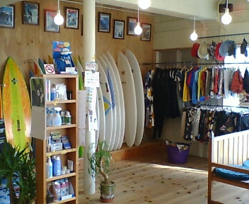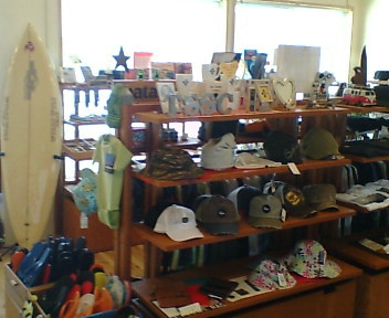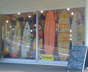 店内からは内妻海岸を一望でき、板や洋服、話題のサンダルcrocsの品揃えも沢山あります。