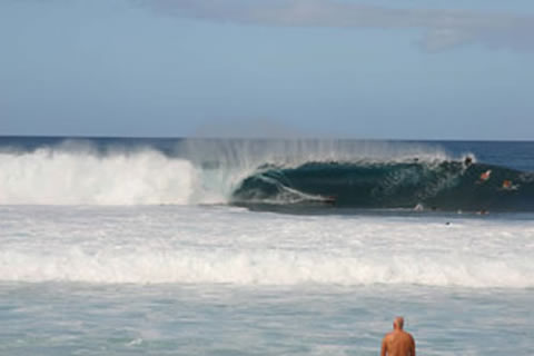 2007年1月1日のパイプライン。もうすぐ始まるボディーボードのコンテストのためパイプはボディーボーダーだらけでした。