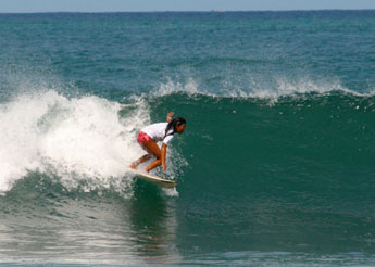コンテストは3日にわたり開催され、 マヒナのヒートは第3日目。この日の波は3〜4フィート。たまにそれ以上の大きなセットもやってくる。