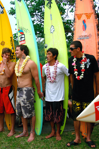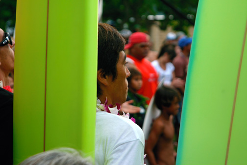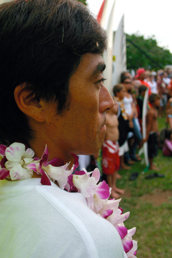 エディーアイカウコンテストにインビテーションを受け、色々な不安があったけれどセレモニーに出て招待を受けている選手達を見てみると、全員がワイメアライダーでは無い事がわかり自分が選ばれた事に少し自信がつき、そして頑張らなくてはという気持ちになりました。