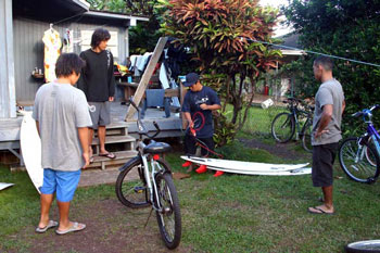 20日の朝コンテストに行く準備をしているケオニと弟のカラニと野崎家の住人達