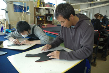 今日は湘南にある僕のスポンサーDOVEウエットスーツの工場に来ている。