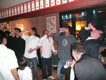 何故かコーラの一揆飲み*本当にキツかった!(中央は、辻堂の兄貴的存在の川淵直樹ライダー)