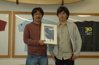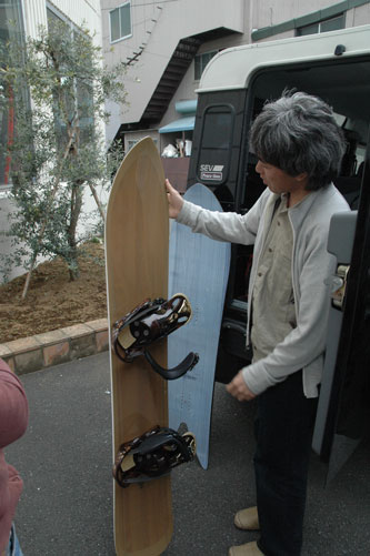 今日、北海道ニセコから玉井太朗さんが来社し、北海道でのテストしているドライスーツのミーティング行われた。太朗さんの手掛けているスノーボードは、まさにサーフィンをイメージして作られている。