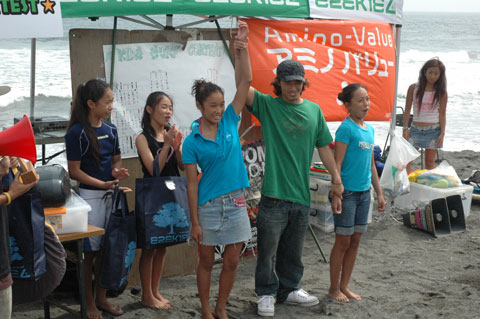 先日7月22日(土)に湘南茅ヶ崎チサンポイントにおいて脇祐史プロ主催の小学生、中学生のみKID’S SURF CONTESTが終始素晴らしい肩〜頭サイズの波で開催されKID’Sの大会とゆう事もあり小学生も多数参加しBOY’Sクラスは、総勢約35名、GIRL’Sクラスも4名エントリーが有り無事事故も無く楽しい大会が行われました。
