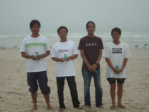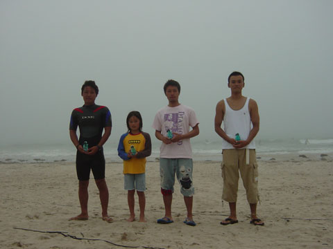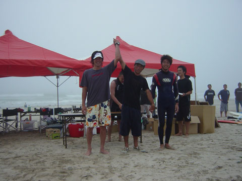先日第8回HARDER CUP 2006が伊勢、国府の浜三角ポイントで膝〜腰サイズの波で行われ天気も良く今回は、ROCK DANCE&DOVEのライダーである脇田プロ、ROCK DANCEシェイパーの高橋真人さんも駆けつけ大成功に終える事が出来ました。