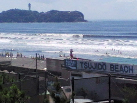 今日の辻堂ビーチの波です、頭サイズで風の影響は、さほど無いのですが南東スウェールなのでブレイクはあまり良くありません!