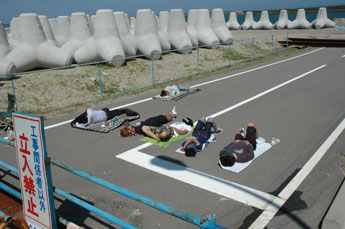 前日夜中を出発し朝一から4ラウンドのウェットテストをこなしたため夕方のサーフのため昼食の後はさすがに昼寝タイム!