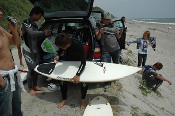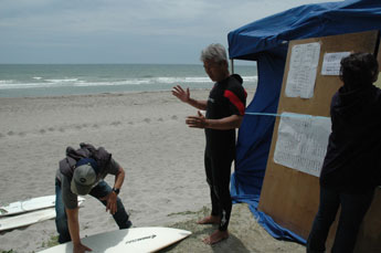 当日は、残念ながら波のサイズは膝〜腰前後でしたが参加人数は、100人近くのエントリーもありプロサーファーの進藤晃、牛腰プロもかけつけエキシビィジョンも行い盛り上がっていた!