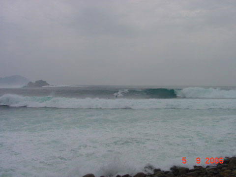 今回の台風凄かったですね。四国でも最高でシリアス波が立ちました。このビックスポットが開拓されてから、こんな波でサーフした日は僕は有りませんでした。波の高さは6−10フィートで真剣のパドルとテイクオフの後はバレルの中に入って行くだけでした。しかも100〜200m有るビックショルダーの中に!干潮前後の9時〜10時前には波はもっとスケールアップし何度もエアーを吹いてました。ピークには8人の頼れるメンバーとダブのジェットスキーをこんな波の時でも操るwatermanじゅんさん、有難うございました。そしてmr, K,I 事、串本さんの乗った波は凄かった。波の高さはもう今は分かりませんが、軽く10FEET、しかも200メートルはバレルの壁をオリジナルなビックウェーブスタイルで走り抜けたのはこの日ラインアップにいた皆がストークしたベストトライドだった! by matchi