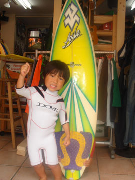パット付きのスプリングを着てやる気満々で毎日鵠沼に行っている高津佐プロの二男”ほうちゃん”『隼世』は、まだ3歳とおそらく湘南エリアでは、最年少サーファーでは、ないだろうか!3歳でこんなに凄いのだからこれからがとても楽しみですね!これからも頑張ってね!