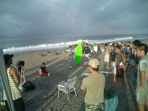 毎年恒例のクリニック&BBQ IN 静岡 9月10日に天気もよく波は腰〜胸位で初心者には少しヘビーな波でしたがPROからアドバイスをもらいながら楽しむ人や真剣な人等それぞれでしたが、自分のお子さん達からの声援をもらいながら和気あいあいと進んでいきました。ビギナー、LADY’S、OPENと進みPROたちのエキビジョン等あり目を丸くしてみていた方々も沢山居ました。
