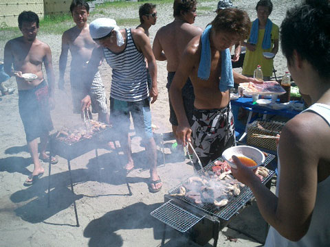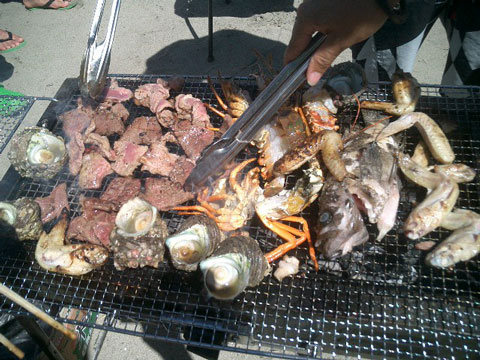 クリニックも終わり前日にKIRBYとバレルスRIDERの中野 真規がとってくれたイセエビに魚介類いつも美味しいお肉をBBQで頂き楽しいひと時を過ごしました。