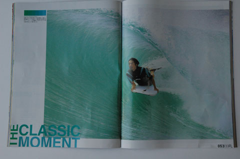 ちなみにこの白い板は掘れた波の場合テイクオフからボトムターンの時ささらないようにロッカーがきつめになっています。バレルの中でスピードをロスしないようにシングルからダブルのコンケープが掘ってありこの波にピッタリでした。