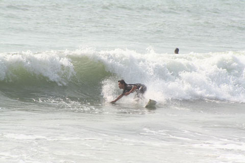 《考察》 2006年度最終戦に当る第3戦は、台風の影響で田原市の予定していたポイントの全ての地形が悪く、延期をも考える状況でしたが、前日の夜に東海海上を通過した小さい低気圧のおかげ で波のサイズも胸くらいまで上がり、エントリー数260名と若干、数は減少しましたが、中身の非常に濃い、2006年度の最終戦にふさわしいコンテストとなりました。 尚、第3戦の結果と、年間ランキングは、12月17日(日)のパーティー日に発表となります