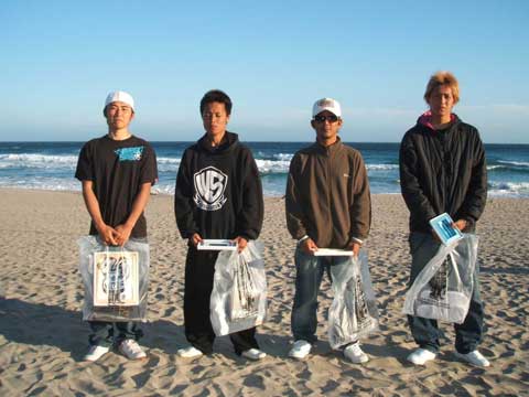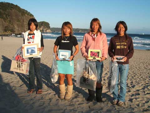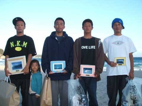 先日10月23日(日)に鈴木直人プロの経営するショップ、リアルサーフのコンテストが伊豆入田浜ポイントで開催されました。大会当日は、天気も良く波のコンディションは、弱いオフショアとフェイスの整った肩〜頭サイズの波が一日中ブレイクして、大会としては最高のステージで行われました!選手は、千葉、神奈川、 山梨、富士、沼津などからも多数参加し総勢エントリー数110名のコンテストとなり地元の選手との交流とお互いにサーフィンでテクニックを見せ合い刺激的なコンテストとなりました。スペシャルクラスに は、2005年全日本ジュニアクラスのウィナー福島竜也<神奈川県茅ヶ崎>マスタークラス3位の磯部康典<神奈川県平塚>先日アメリカ、カリフォルニアで行われた世界ジュニア選手権日本代表の槙野明弘<静岡伊豆>が本大会に出場してレベルの高い大会となりました。KIDSクラス優勝は、小学校3年生 の松下諒太くん<神奈川県湯河原>が小さな体で力強いライディングを見せてくれました。ビギナークラス優勝は、ロングライドを決めた高村敏之さん<沼津 >。サーフィンウィメンクラスは、今年地元の大会で優勝しまくりのリアルサーフのライダー佐藤由有!BBウィメンの優勝は若干12歳の奥園ちはるちゃん<神 奈川県平塚>がベテラン選手を破り見事に勝ちました。オープンクラスは、応募人数32名を上回る50名が参加!決勝まで勝ち上がるには至難の業!!今回はレベルがとても高かったのが印象的でした。優勝は村 山智さん<沼津>がレギラーの波ですばらしいリップを決めて他を圧勝しました!スペシャルクラスはリアルサーフのライダー鈴木祐介が際どいセクションにリッ プ、コースターを鋭く決めて、初優勝を決めました!!決勝進出者には、沢山の賞品と地元カメラマンの水口氏が作成した世界の波の素晴らしい写真フレームがトロフィーとして贈られました。