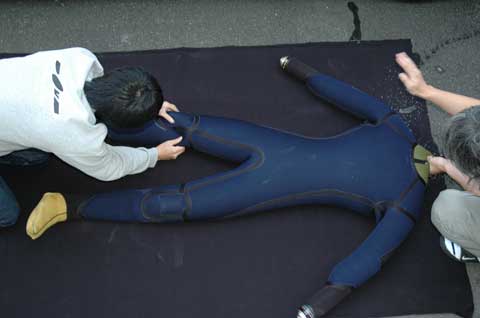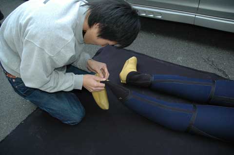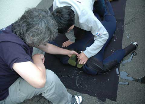 ホットスーツの場合ブーツ一体化となっておりますのでスーツ本体に穴や、破れがございますと水が侵入し大変危険なので必ず弊社に送って頂きリペアを行って下さるようお願い致します!メンテナンスのみも税込¥3150で行っておりますので是非御利用下さい。尚納期は、3週間〜1ヶ月ほどかかりますのでご了承下さい。