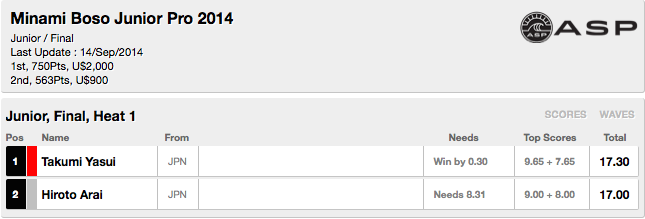 9月13日から4日に行われた、Minami Boso Junior Pro 2014の結果です。