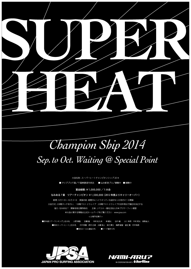 私共、JPSA 一般社団法人日本プロサーフィン連盟は年間のグランドチャンピオンを選出する国内プロツアー戦以外に特定された場所において、特別な波が立ったときに一日開催で特別試合を実施させていただきます。