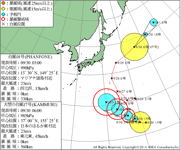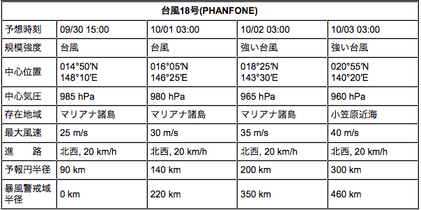 17号は過ぎ去り、今週末に掛け18号が日本の南海上に接近して来る予報です。