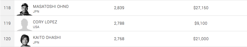 大野マサトシ選手が118位、大橋カイト選手が120位。