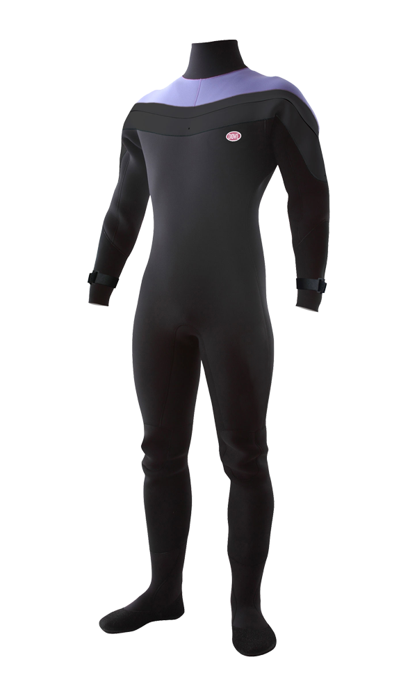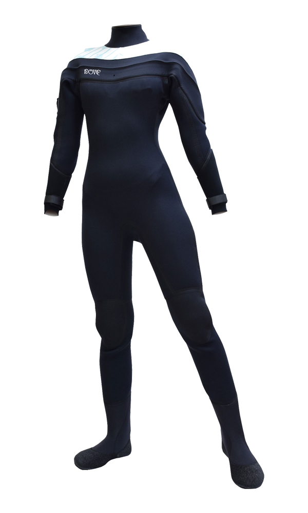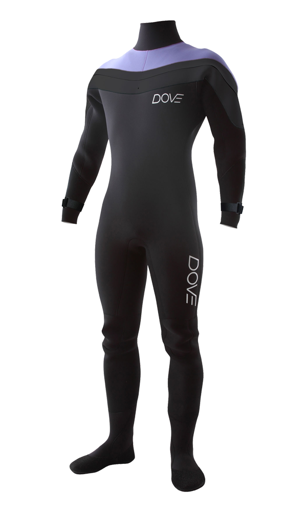 DOVE は、1993年にマニアックスーツという寒冷地仕様のセミドライスーツを販売していました。その名のとおり、プラスチック製の防水ファスナーを首の周りに設置した見た目からも特殊なマニアックなスーツです。