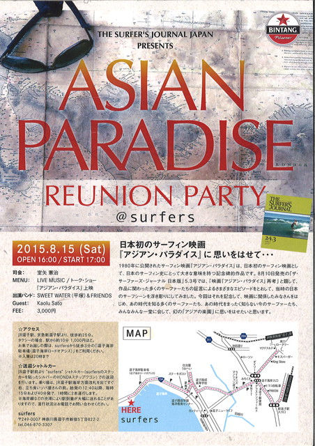 先日8月15日に逗子surfersにてASIAN PARADISE REUNION PARTYが開催されました。