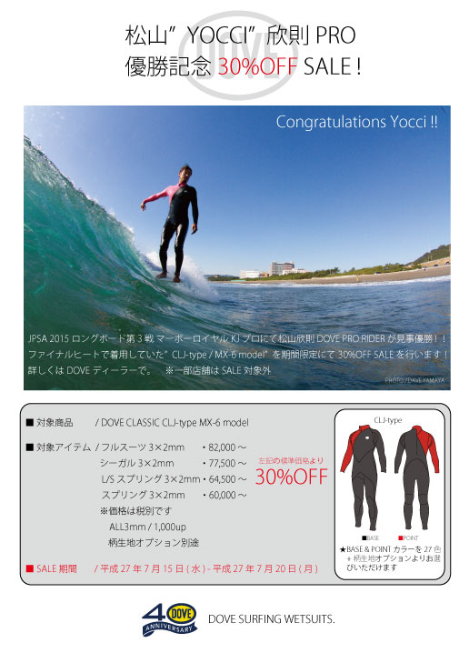 松山”YOCCI”欣則PRO 優勝SALE開催!!