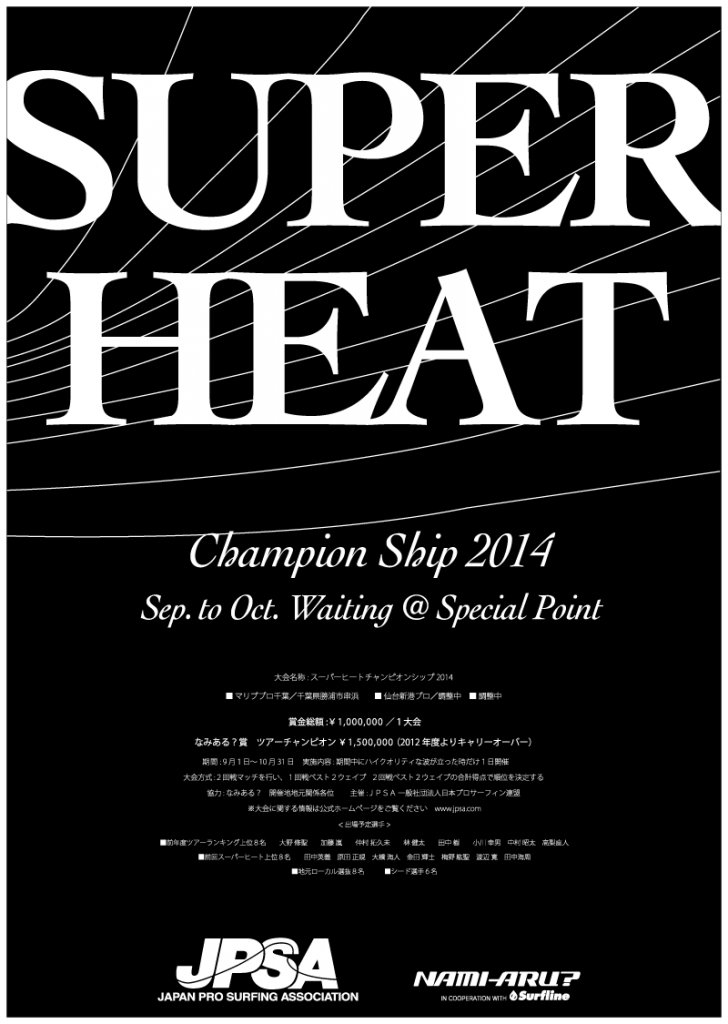 SUPER HEAT 2014 マリブプロ千葉のヒート表が発表されました。 本日、千葉県マリブポイントで行われる予定のスーパーヒート 台風17号のビッグウェーブ楽しみです!!