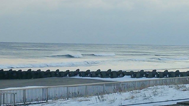 北海道の某ポイント、良い波ですね!CLIONE・SEALが有れば強い味方!雪積もっていますがほんと良い波だ!