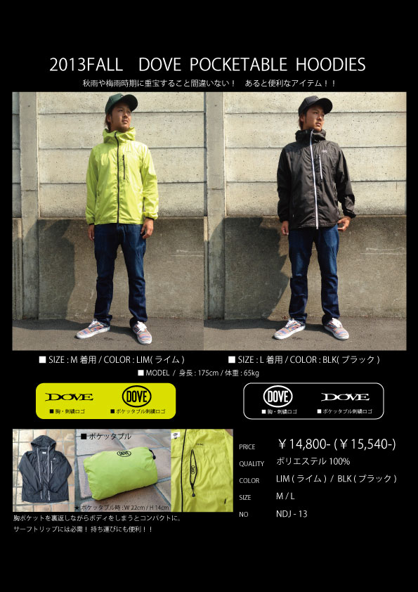 DOVEより、ポケッタブルフードジャケットが新発売になりました。朝晩は少し肌寒く感じるようになってきたこの時期、雨が降ったりしたら大活躍しますね。薄手のジャケットは、ポケットを裏返しながら本体を収納できるので携帯にも便利 […]