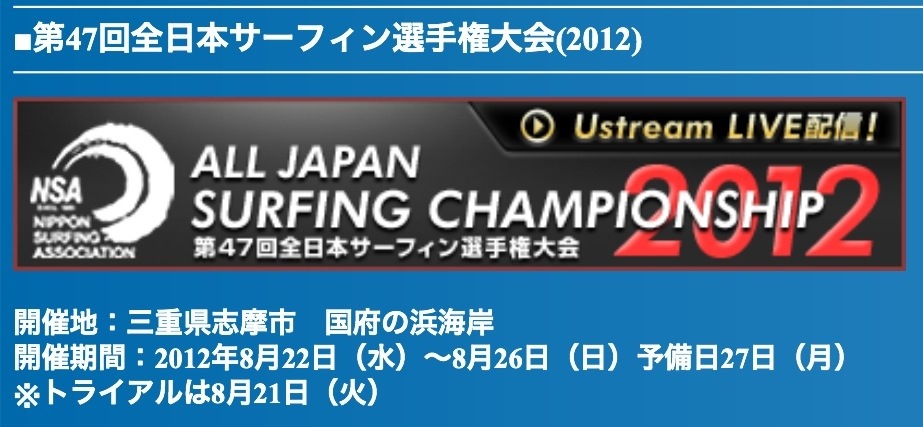 【Surfing for all がんばろう日本!】JPSAジャパンプロサーフィンツアー2012 ショートボード第4戦ALL JAPAN PRO 新島期日 8月29日(水)~31日(金)会場 東京都新島村 羽伏浦賞金総額 […]