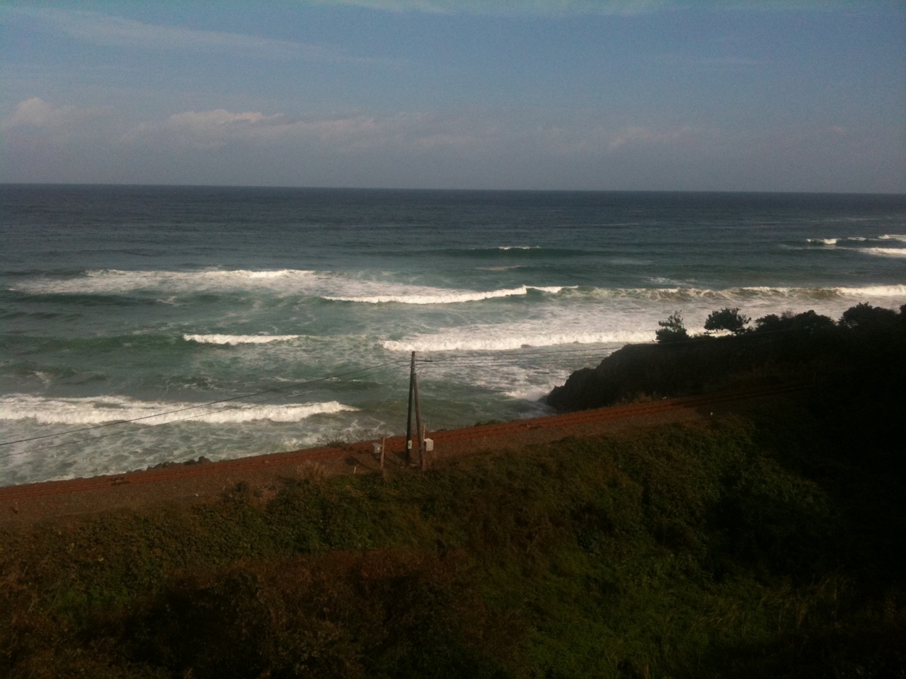線路の下のトンネルを抜け、サーファーズ ガーデン竹中オーナーの愛息子「ジョーイ」と波チェック!Update from iPhone by NIShi…